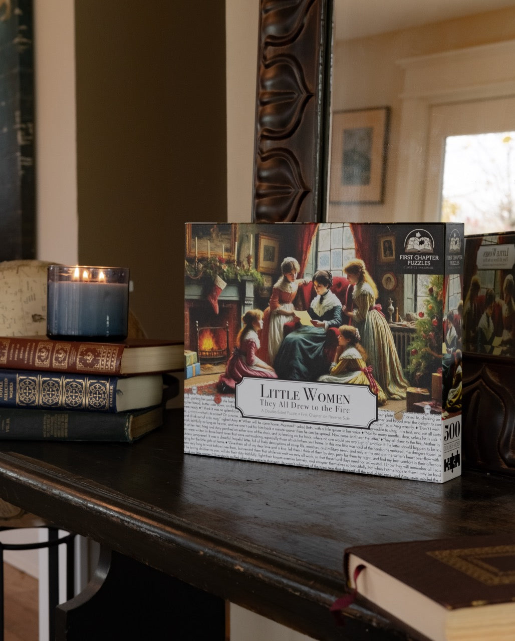 Step into Louisa May Alcott’s Little Women with this 500 piece double-sided puzzle. Immerse yourself in the warmth of the March family’s parlor, then flip the puzzle to enjoy the entire first chapter in a sleek, modern font. Perfect for fans of classic literature and puzzle enthusiasts alike.